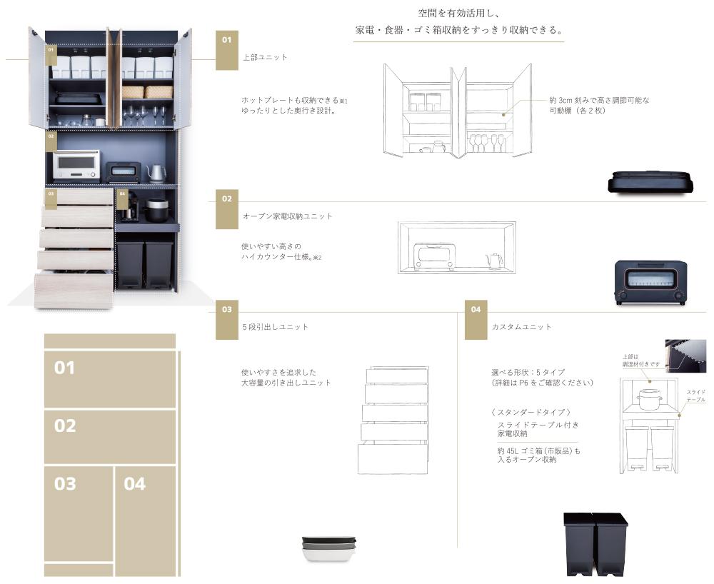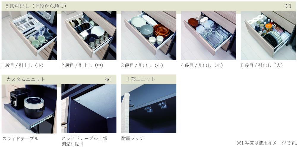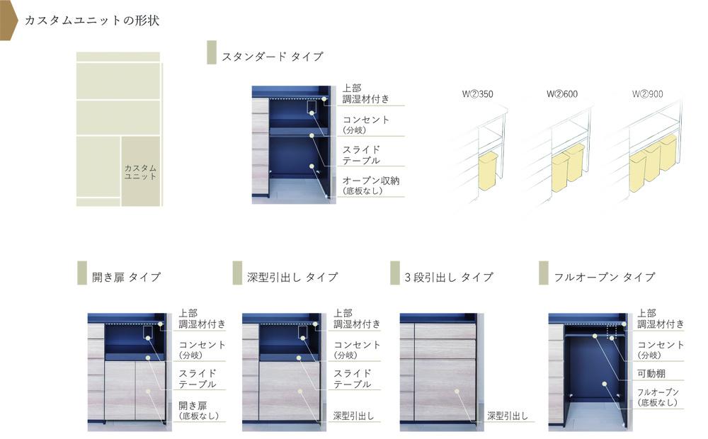 天井高 220㎝以上から260㎝まで設置可能 / 幅 5㎝ピッチで製作可能 / 奥行 46.3㎝